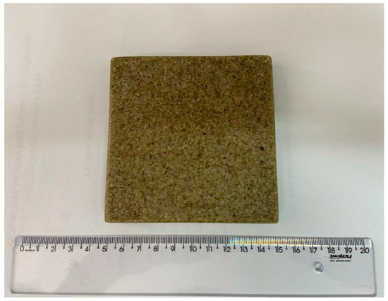 The 100 × 100 × 12 mm3 artificial stone plates were produced within the standards. Later, they were cut to the dimensions specified for carrying out the tests. Figure 1 shows an ASPU plate.