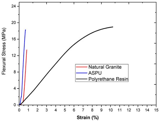 Figure 3 shows the bending stress vs. strain curves for ASPU, white granite and vegetable polyurethane.