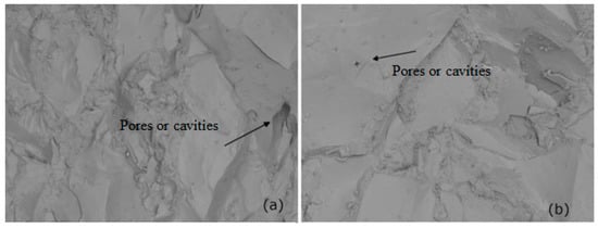 Lee and Shin [] reported fiberglass/PET composites produced under the influence of vacuum, mold temperature, and cooling rate. The authors observed that specimens produced without vacuum during the preheating stage registered values of approximately 1.9% porosity, whereas specimens produced with the aid of vacuum recorded much lower values of 0.3–0.4% porosity.