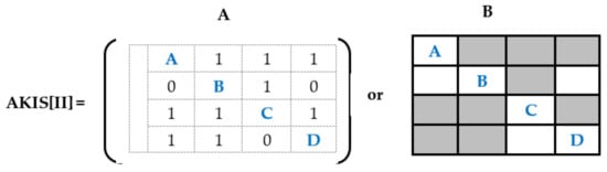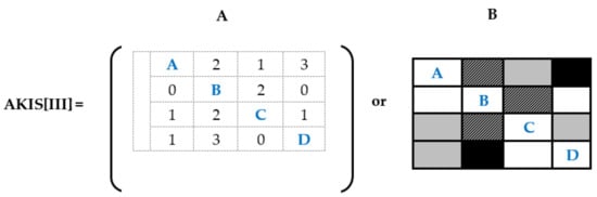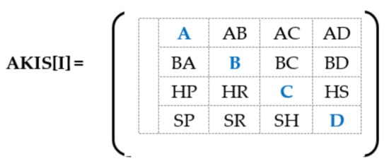 In this example (Figure 1), the number of one-edged pathways in the AKIS[I] matrix is 4!/(4 − 1 − 1)! = 12, where n = 4 and k = 1.