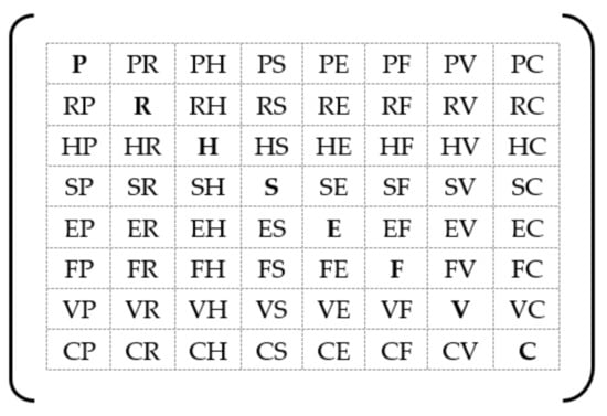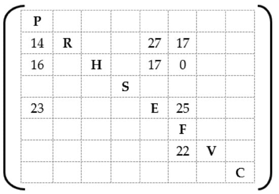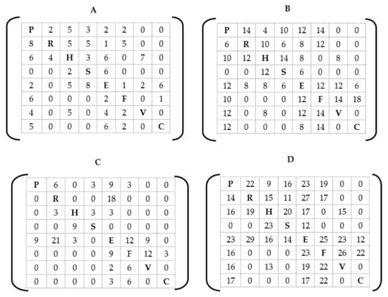 Determining the gaps and information pathways in the cause–effect relations is critical to grasp the desired changes within the AKIS. Establishing the dominant and dependent components in the system utilizes coordinates of cause and effect and requires having three matrices for the various types of linkages (weak, moderate, and strong). Causal relation matrices (CR) are given by the following formula []: