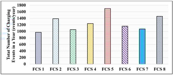 where is the average number of annual charging events in number of FCSs () and is the number of annual charging events in the FCS . After the annual number of charging events and the energy demand for each charging event are determined, the annual energy demand from the FCS is estimated as follows: