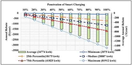 | The 25th percentile annual rebate paid to customers for using smart charging power, | |