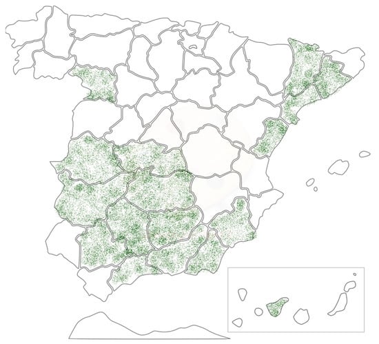 - Ministry of Agriculture Fisheries and Food. Areas and Annual Crop Production (Advancement); Spanish Government: Madrid, Spain, 2020. [Google Scholar]