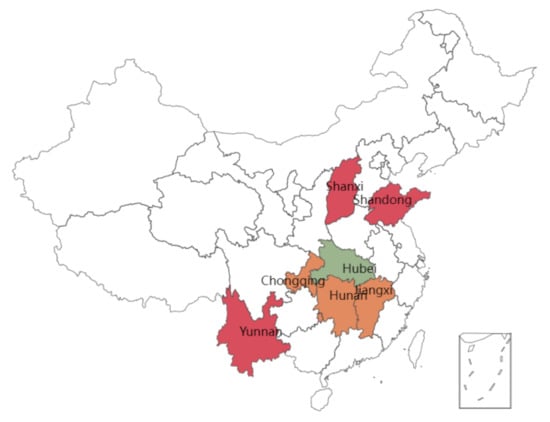 As shown in Figure 4, Chongqing, Hunan and Jiangxi are selected as the provinces adjacent to Hubei, while Shanxi, Shandong, and Yunnan are selected as the provinces that are relatively far away from Hubei.