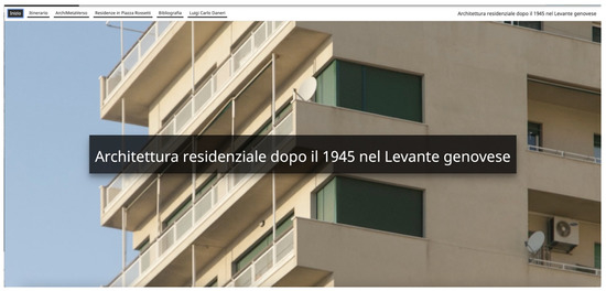 - Regione Liguria. Available online: https://www.regione.liguria.it/homepage/cultura1/progetti-pubblicazioni/progetti-conclusi/architettura-moderna-contemporanea.html (accessed on 22 March 2022).