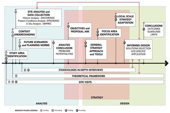 The landing phase was kept active throughout the research by carrying out site visits as a way to verify the process and discoveries during the grounding and finding phases. Moreover, grounding and finding took place more akin to an oscillation between an historic and diachronic archive analysis and locals’ interview (Figure 2).