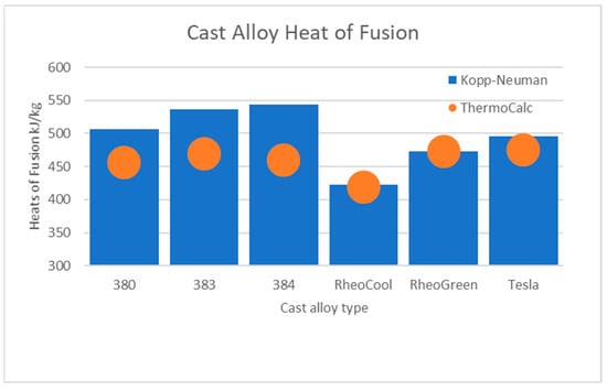 Latent heat of fusion for common cast alloy families.
