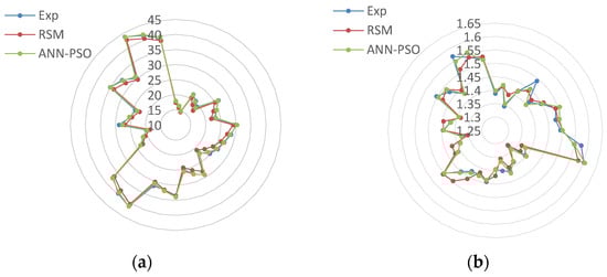 Consequently, the prediction accuracy with the ANN–PSO model is more than those obtained with the RSM model. At the extent of these low error rates, we can say that the model predicts process response with high accuracy and can be used in the optimization process, as has, also, been confirmed by [19].
