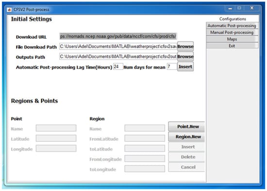 Post-processing is a task completed on numerical weather predictions with different purposes [,,]. One of the purposes is that some models do not have predictions in some areas due to scalability limitations [,,,,]. Post-processing helps to have predictions everywhere. Another goal of post-processing is to enhance the predictions.