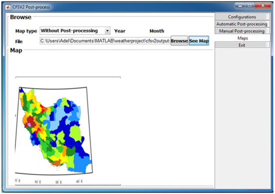 Although many meteorological prediction models have been developed recently, their accuracy is still unreliable. Post-processing is a task for improving meteorological predictions. This study proposes a post-processing method for the Climate Forecast System Version 2 (CFSV2) model. The applicability of the proposed method is shown in Iran for observation data from 1982 to 2017. This study designs software to perform post-processing in meteorological organizations automatically. From another point of view, this study presents a decision support system (DSS) for controlling precipitation-based natural side effects such as flood disasters or drought phenomena. It goes without saying that the proposed DSS model can meet sustainable development goals (SDGs) with regards to a grantee of human health and environmental protection issues. The present study, for the first time, implemented a platform based on a graphical user interface due to the prediction of precipitation with the application of machine learning computations. The present research developed an academic idea into an industrial tool. The final finding of this paper is to introduce a set of efficient machine learning computations where the random forest (RF) algorithm has a great level of accuracy with more than a 0.87 correlation coefficient compared with other machine learning methods.