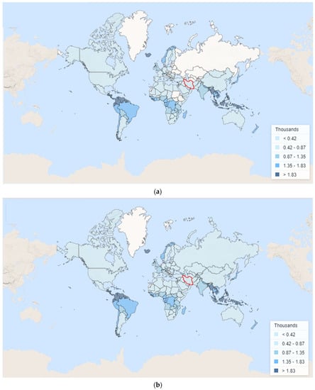Here, we focus on recently published papers in this research area. For example, Sparrow et al. [] developed a platform for a climate prediction and monitoring system based on citizens’ participation named OpenIFS@home version 1. In the declared system and climate change monitoring, feedback from citizens can improve the quality of the model, and it is a sample of a techno-social system. Plus, Kang and Sridhar [] presented the soil and water assessment tool (SWAT) model due to drought prediction. All computations are completed based on mathematical modelling of soil and hydrological historical data analysis in the mentioned process. An-Vo et al. [] presented a prediction model for rainfall amounts in rice farms in a case study in the Greater Mekong Region (GMR), Southeast Asia. Through the research, plus the climate forecasting system, a bio-economic assessment framework is introduced, which can be utilized in the agriculture appraisal process. Sheela et al. [] applied Naive’s algorithm for agricultural climate estimation. In the study, farmers examined this dashboard’s performance in different cases. Akhila et al. [] presented a model based on an artificial recurrent neural network (RNN) system for long and short-term estimations of the climate. In the declared study, the temperature is measured as a climate indicator, and the accuracy of models are assessed by statistical error functions such as the mean absolute percentile error.