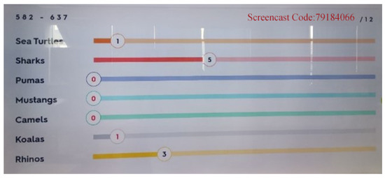 The game activities in this experiment mainly made use of the online game competition mode of the platform: the Quizlet Live games function. The purpose of this feature is to allow students to participate in interesting and competitive vocabulary test games in the form of individuals or teams, help students strengthen the vocabulary and concepts they learn in the classroom, and realize classroom interaction, so as to test the learning effect of students. After the teacher chooses to create the game in either individual or group form, the platform will generate a QR code and invitation code, and students can join the game in either way. In the game, the progress bar for selecting the correct answer will increase, while it will return to the starting point and start again if a wrong answer is selected. All students participating in the game can see the real-time situation of the leaderboard, as shown in Figure 1. In the individual competition game mode, all students compete with each other, and only the fastest student with all the correct answers can win the competition. In the group competition game mode, the system randomly groups all students who participate in the game. There is a cooperative relationship between the group members and a competitive relationship between the groups. Each member of the group will be assigned the same word, but the correct answer will only be randomly assigned to the screen of one member of the group. Students need to pay close attention to observe whether the correct answer will appear on their screen. Students who are likely to be assigned the correct answer do not know what the correct answer is, so it requires teamwork to help choose answers. The distribution of word answers may be different each time, and everyone in the group must be fully involved in order to finish as quickly as possible and win.