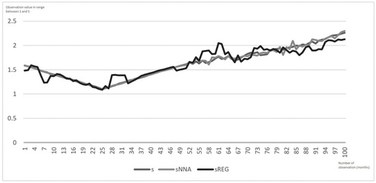 - Very high correlation coefficients between smart sustainability and risk were achieved (−0.884), since increasing risk reduces smart sustainability (Table 4).