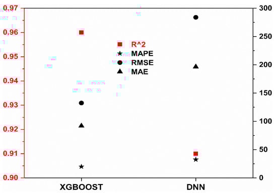 Evaluation metric comparison between XGBOOST and DNN.