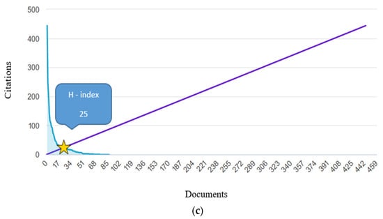 Citations analysis of sustainable supplier selection with DEA literature, (a) citation overview of selected documents in sustainable supplier selection with DEA literature, (b) frequency of citations in DEA literature regarding the sustainable supplier selection, (c) h-index of literature of sustainable supplier selection with DEA literature. Source: Authors’ work, 2022.