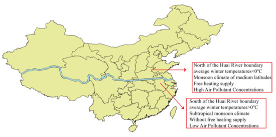 It is well-known that China is a developing country with a vast territory. Geographically speaking, China is divided by the Huai River into two significantly different climates, namely a Monsoon climate of medium latitudes (geographically located in Northern China) and a Subtropical monsoon climate (geographically located in Southern China). More specifically, northern cities experience extremely low temperatures in winter than their southern counterparts. This phenomenon makes it difficult for the residents of northern China to engage in outdoor production during the winter, which negatively affects the development of the Chinese economy.