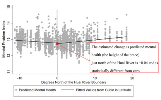 Figure 4. The Huai boundary causes a 0.47-unit decrease in the mental health of the northern residents compared with their southern counterparts. Taken together,