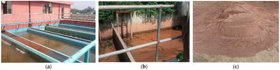 Water treatment plant (a) Sand filter, (b) drying bed, and (c) powder form of WTS.