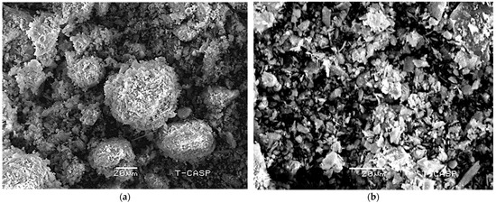 SEM images of clay and WTS (20 µm). (a) SEM images of WTS, (b) SEM images of clay.