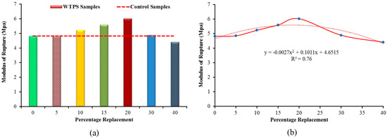 Modulus of rupture test for bricks producing WTS. (a) Experimental result, (b) emperical results.