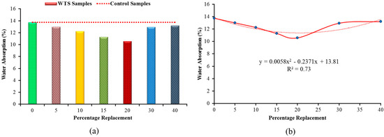 Effect of WTS on water absorption. (a) Experimental results, (b) emperical results.