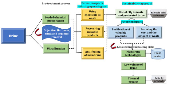 There are several review articles in this area that presented discussions on brine management and treatment-based and technology-based solutions. Bello et al. have recently given an overview of brine management, desalination technologies, life cycle assessment, and recovery methods [1], while Al-Absi et al. provided an update on the use of adsorption processes as a recovery option and discussed the various brine management strategies and technologies [2]. Mavukkandy et al. reviewed recent research and technological development on recovering water, minerals, and energy from desalination brine [3]. Soliman et al. have presented a comprehensive review of the current technologies of various desalination processes and the detailed energy consumption and water production costs of these technologies [4]. However, previous reports lack detailed analysis of future prospects to achieve sustainable brine management. Hence, the present review focuses on the current brine disposal strategies, methods of treatment, hybrid methods for metal recovery, and zero liquid discharge (ZLD). More attention was given to analyzing futuristic developments of a sustainable hybrid strategy for brine management that could open gateways to remarkable water recovery and mineral recovery channels while attaining the near-ZLD approach.