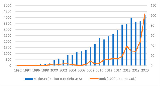 China’s soybean and pork imports during 1992–2020 (source: UNCOMTRADE).