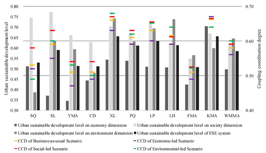 Li, Y.; Zhang, X.; Gao, X. An Evaluation of the Coupling Coordination Degree of an Urban Economy–Society–Environment System Based on a Multi-Scenario Analysis: The Case of Chengde City in China. Sustainability 2022, 14, 6790. https://doi.org/10.3390/su14116790