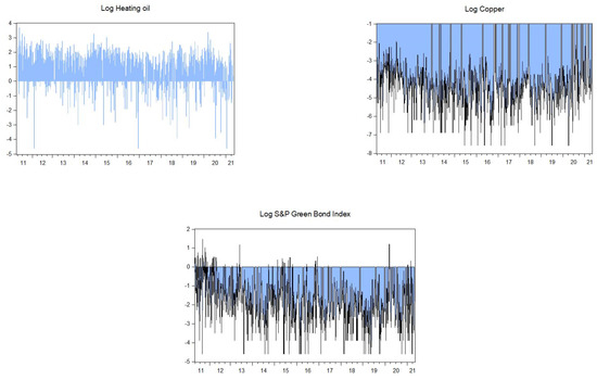 We begin our analysis with a simple illustration that shows the dynamics of logarithmic returns in the commodity market and green bonds (