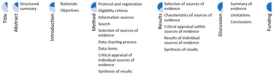 The scoping review at hand is based on the Preferred Reporting Items for Systematic Reviews and Meta-Analyses (PRISMA) extension for scoping reviews, PRISMA-ScR []. While an update of the PRISMA statement (called the PRISMA 2020 statement) was published in 2021 [,] recommending existing PRISMA extensions to be updated to reflect PRISMA 2020, the extensions for scoping reviews have not been updated since 2018. Thus, the review is reported in accordance with the PRISMA 2020 statement [] coupled with the specific guidance given in [].