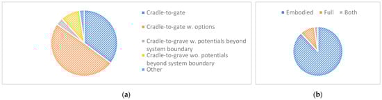 This review aims to assess the extent to which the approaches applied to answer questions regarding the economic model and environmental performance of the BE are transparent, consistent, and in accordance with the general EU recommendations [], when considering the appropriate scale of the decision support applicable to the different types of LCAs of building principles and economic models. Although most LCA assessors are aware of the existence of the EU recommendations [] regarding the valid decision context associated with the types of LCA, it appears that the majority of the assessments in the BE stick to the classical and simplistic way of performing building LCAs (i.e., attributional LCA (ALCA) applying the cut-off system model, in concordance with the construction coherent standards, i.e., EN15804 and EN15978 [,]). The results of these assessments are most often correctly used to judge the environmental performance of building principles and economic models seen from a single building perspective, and are often subsequently—and incorrectly—used to make recommendations on how the environmental performance of the society benefits from these building principles and economic models. Some authors have already described this potential misalignment, e.g., [,]; however, a systematic overview and analysis of the problem, with the BE specifically as a focus, seems to be lacking.