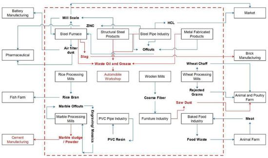 In developing economies, SMEs have been acknowledged to significantly contribute to socio-economic development [19,22]. However, the contribution of SMEs to progress in resource efficiency and cleaner production has been less acknowledged [23,24] due to a lack of awareness, a limited industrial base, and inconsistencies in policies [25]. Consequently, the inclinations for eco-industrial development are less observable among the developing economies as compared to developed regions. There is a need to identify, quantify, and facilitate such productive exchanges for robust industrial and economic growth [22]. However, the baseline information and assessments pertaining to existing resource synergies are the missing links in developing countries such as Pakistan.