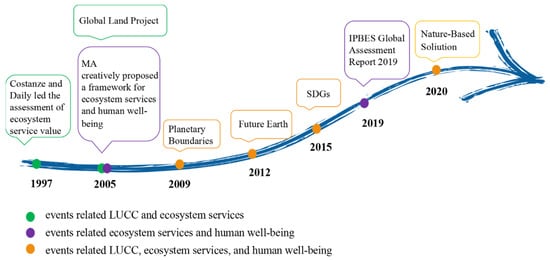 - The directions of further development on the topic of LUCC–ecosystem services–human well-being are discussed. There is still a lot of space for further improvements. Four issues were listed which are worth addressing in future studies of “LUCC-ecosystem services-human well-being”: spatiotemporal scale correlation, driving force analysis under different scales, the correlation among different group characteristics in human well-being, and the impact of climate change on ecosystem services and human well-being.