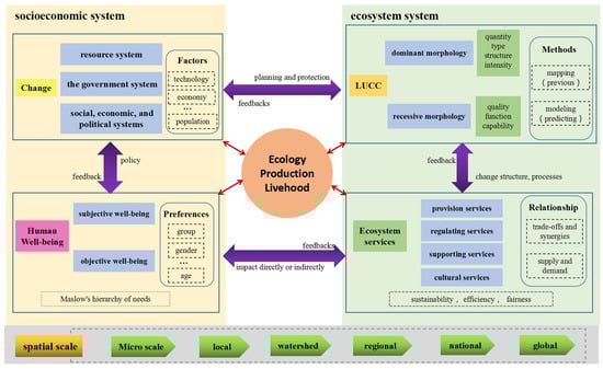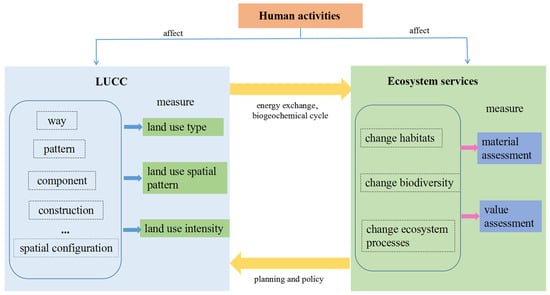 - Existing research in exploring the relationship between LUCC and human well-being is usually through land use type change, land use spatial pattern change, and land use intensity change. They usually use a collection of several different methods to explore the difficult relationships between LUCC and ecosystem services. In addition, scale effects are still a challenge in current studies.