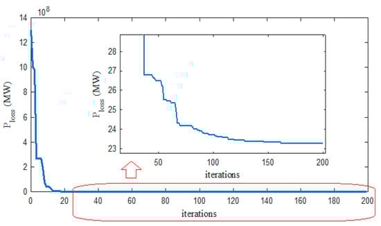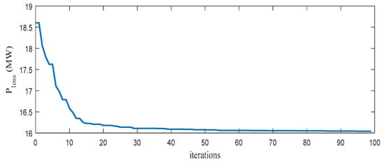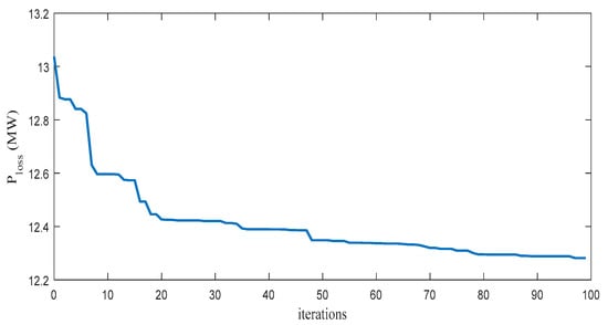Minimization of power loss, which is the main objective function, can be represented by Equation (6).