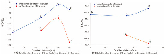 Figure 10. Relationship between δ18O and relative distance.