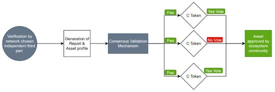 The asset owner would incur the cost of this process and would pay a network fee for consensus validation by market participants, who validate the asset by voting on its adoption. All generated reports and underlying protocols are open sources and transparent, meaning that the network is constantly legitimised.