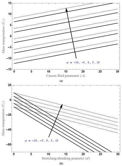 - As the parameter increases, mass transpiration also increases in both the stretching and shrinking cases.