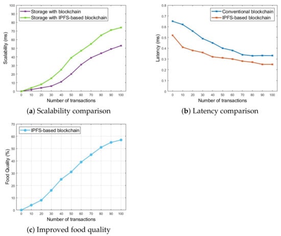 Then, Caro et al. [14] proposed a fully decentralized blockchain-based method for food supply chain management, referred to as AgriBlockIoT. Here, the proposed system was deployed in Ethereum- and hyperledger-based blockchain, then they evaluated the performance of the proposed system based on various parameters such as latency, memory, and network usage. Moreover, Mondal et al. [54] proposed a blockchain-inspired IoT architecture to create a transparent food supply chain. An IoT-based food monitoring architecture tracks the food and performs a quality check of packaged food. Here, the real-time sensor data (collected using the single sensor) are updated in a BT while scanning the food packages at different places such as the retailer, logistics, or storage within the supply chain. Many sensors are integrated depending on the packaged food and sensing parameters of interest, for instance light, moisture, and temperature. Then, the authors of [55] discussed the shortcomings of IoT technology deployed for monitoring food products. For example, the collected data are not fully transparent to the consumers, and there is a risk of data tampering attacks on the collected food data. Therefore, they involved BT, which securely stores the food data collected by the IoT sensors. The proposed framework shows improvement while protecting the food data against data integrity attacks.