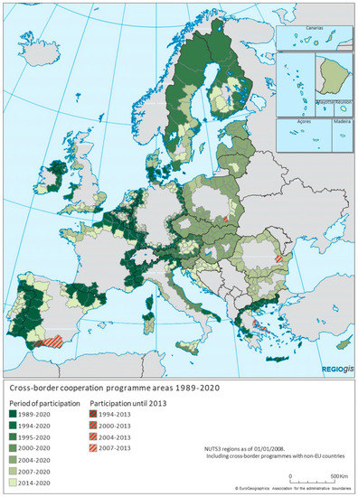 - European Commission. The Cross-Border Cooperation in the EU. 2020. Available online: https://ec.europa.eu/regional_policy/en/policy/cooperation/european-territorial/survey-2020/ (accessed on 14 March 2022).
