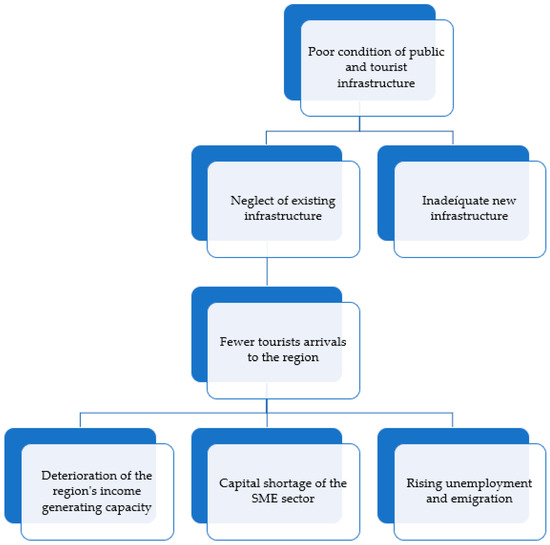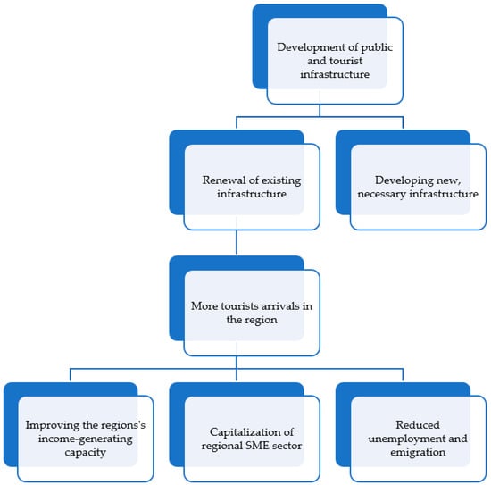 Based on the problems identified, the study has also made it possible to define the main objectives to be taken into account in this specific cross-border area, namely: the development of public and tourist infrastructure. On the one hand, the creation of new infrastructure and, on the other, the renovation of existing infrastructure that will attract more tourists and investors to the area, thus creating jobs and improving economic performance (Figure 5).