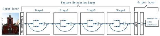 In order to further evaluate the applicability of these deep learning methods in the automatic classification task of the Harbin modern architectural facade styles, we decided to use different types of neural network models for testing and to improve the model according to the characteristics of the classification task in order to find the best solution for this specific classification task. At present, ResNet is the most popular network model, and it had obvious advantages in previous image classification tasks.