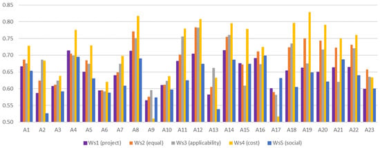 | Ws2 | Equal weights for all indicators | 25 | 25 | 25 | 25 |