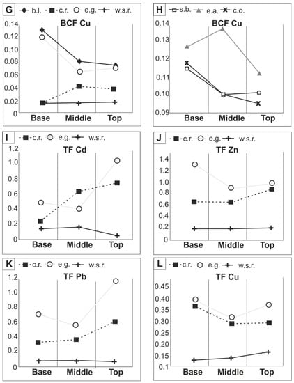 - Szwalec, A.; Lasota, A.; Kędzior, R.; Mundała, P. Variation in heavy metal content in plants growing on a zinc and lead tailings dump. Appl. Ecol. Environ. Res. 2018, 16, 5081–5094. [Google Scholar] [CrossRef]