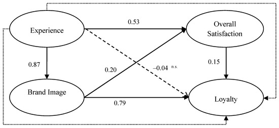 Visitors’ experiences did not directly influence their loyalty towards the destination as opposed to the argument by Schmitt [69] and Barnes et al. [73]. This is not surprising, as experience has been reported to affect loyalty behaviors through emotion and value perception [72,122]. In other words, the effect of the stimulus outcome (experience) on consumer behavior is mediated by the emotional state. However, experience did directly affect brand image and accounted for more than 75% of variance, which complements the theoretical assumptions that brand image perceived by visitors is created as the experiential outcome of their exposure to stimuli by providing empirical support to the relationship. This is also consistent with previous findings, suggesting that experiences perceived directly influenced the associations linked to a specific brand and ultimately resulted in a favorable positive brand image [123,124].