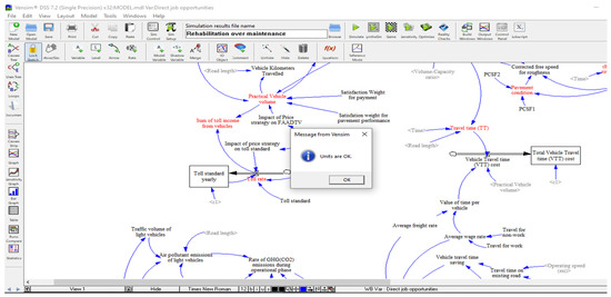 Validation is the next step to ensure that the model supports the objective truth. Before using the model for analysing the sustainability performance of policies, building confidence in the model structure and behaviour is essential. As no model exactly represents the real world, a model is verified and validated based on limitations and assumptions [66]. For example, instead of reflecting historical data, variables of the system should show meaningful relationships with others in the whole system. Therefore, the SD model in this research was built based on specific constraints and assumptions (Appendix A) to provide insights into the sustainability of road infrastructure projects and support policymakers in optimising investment options. This section presents tests to validate the developed SD model through ‘behaviour replication’ and ‘robustness under extreme conditions’ tests. Every equation must also be checked for ‘dimensional consistency’.