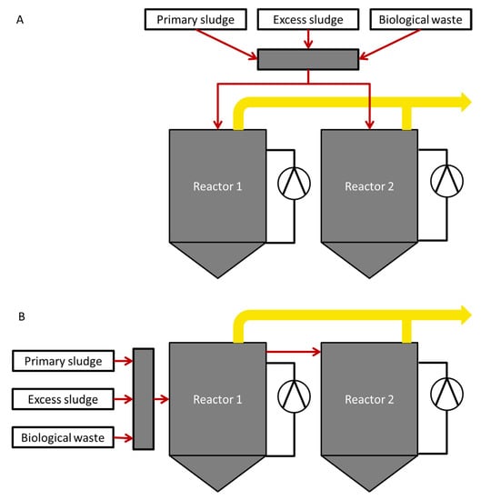 Changing the operational conditions from parallel to serial operation is an interesting option to increase the biogas production in an already existing infrastructure. During parallel operation, reactors are operated independently from each other, whereas during serial operation, reactors are connected in a cascade (Figure 1).