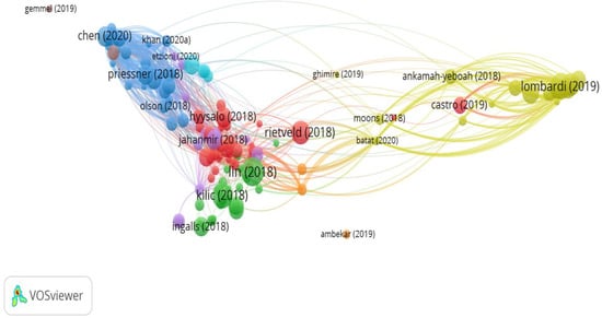 Clusters of papers published from 2018 to 2020 (source: free version of VOSviwer, version 1.6.18 (January 2022)) [].
