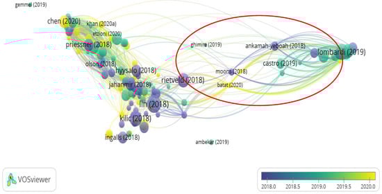 Clusters of papers per year, published from 2018 to 2020 (source: reprinted from a free version of VOSviewer, version 1.6.18 (January 2022)) [].
